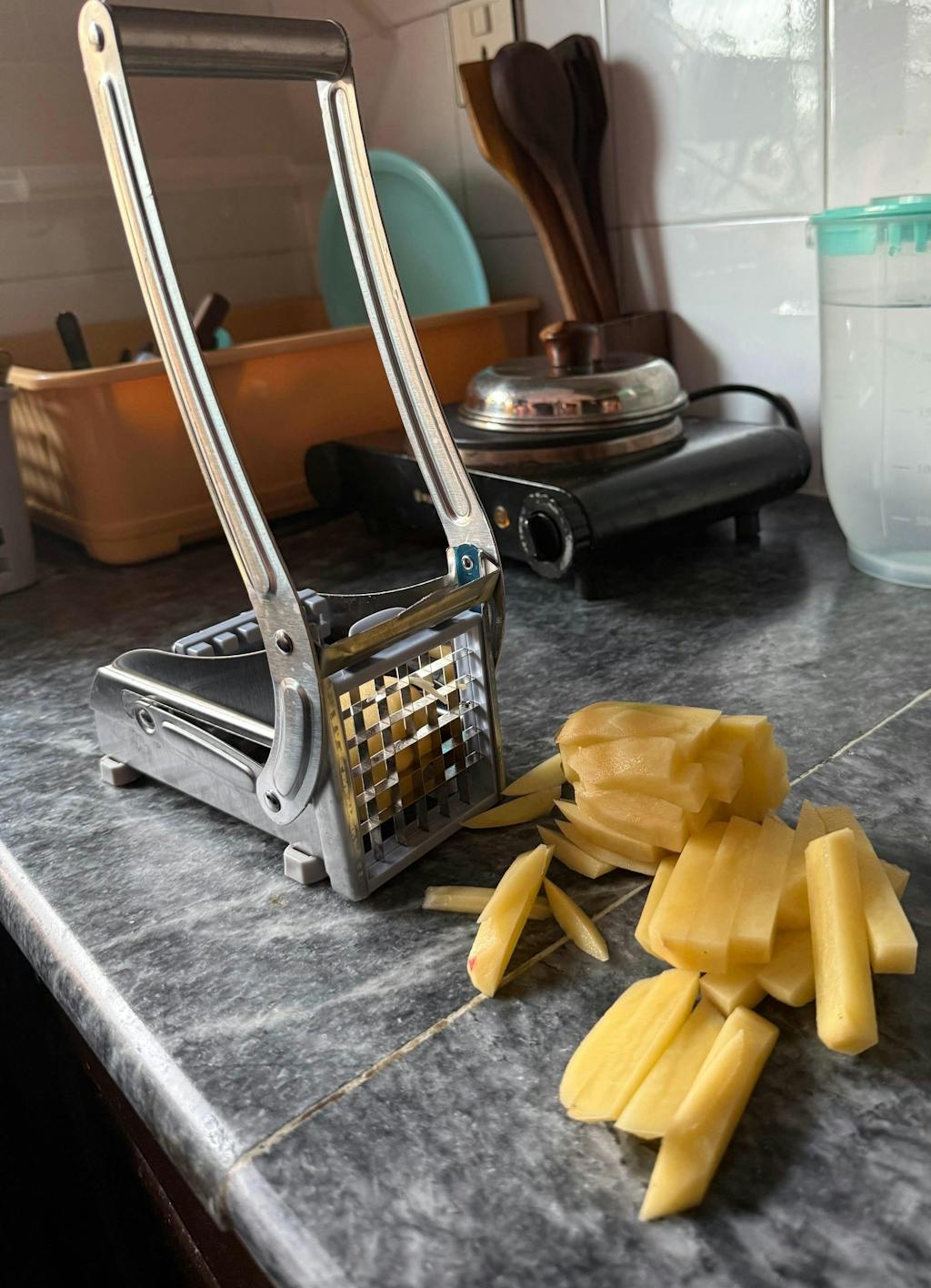 Heavy-Duty Stainless Steel Construction: Strong, rust-resistant body built to last. Interchangeable Thick & Thin Blades: Choose your perfect cut style — great for fries or chips.
